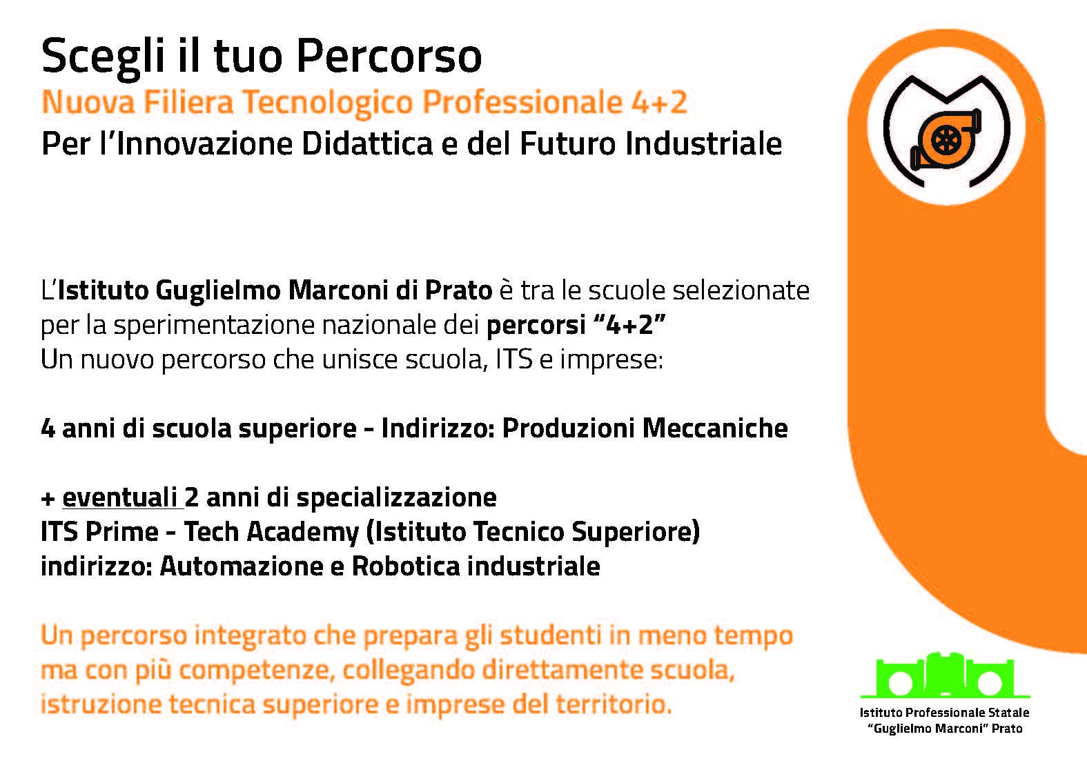 Sabato 24 Gennaio alle ore 10:00 in aula magna si svolgerà la presentazione del nuovo corso quadriennale di Meccanica 4+2 in collaborazione con ITS “Prime”, Formetica e alcune imprese di Confindustria Toscana Nord.